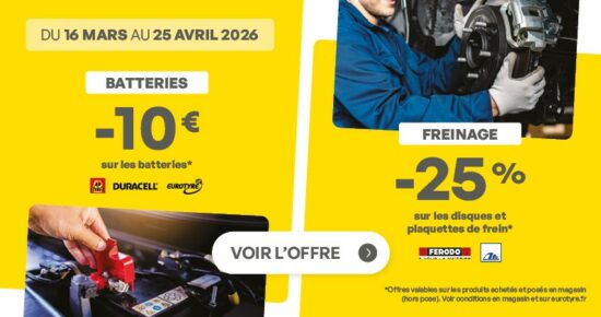 Du 16 mars au 25 avril 2026, profitez des promotions sur les batteries* et sur les disques et plaquettes de frein* […]